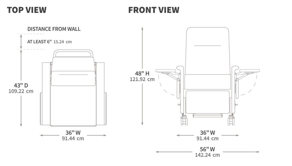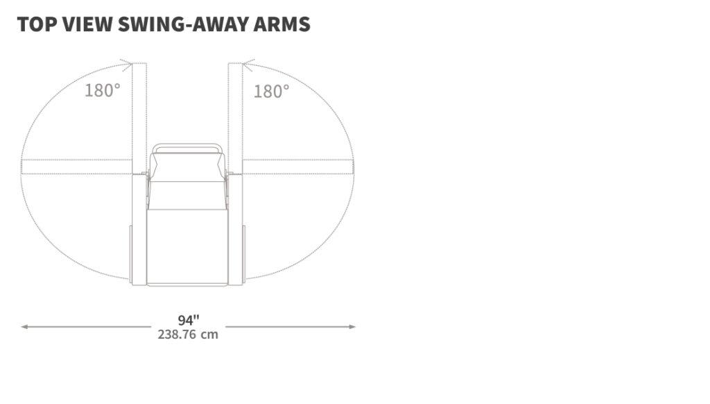 | Minimum width (arms open at 180º) | 36″ (91.44 cm) |