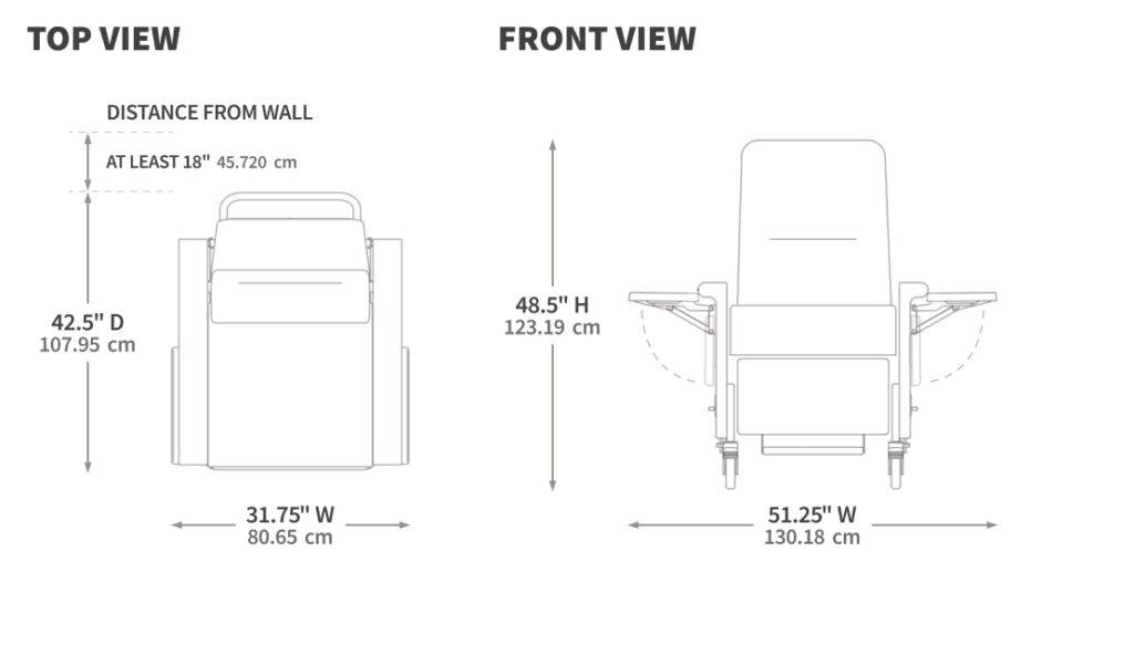 Infinite recline positions and either stationary or swing-away arms provide optimal patient comfort and better access for caregivers.
