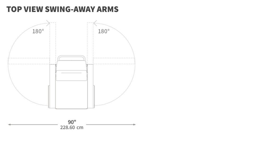 | Maximum Width (arms open at widest) | 90″ (228.6 cm) |