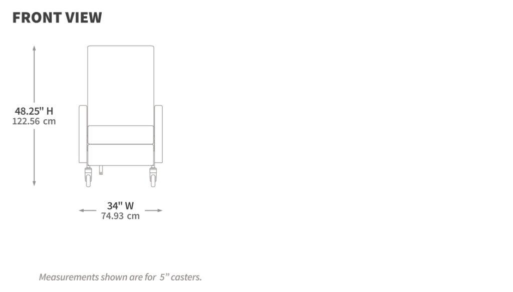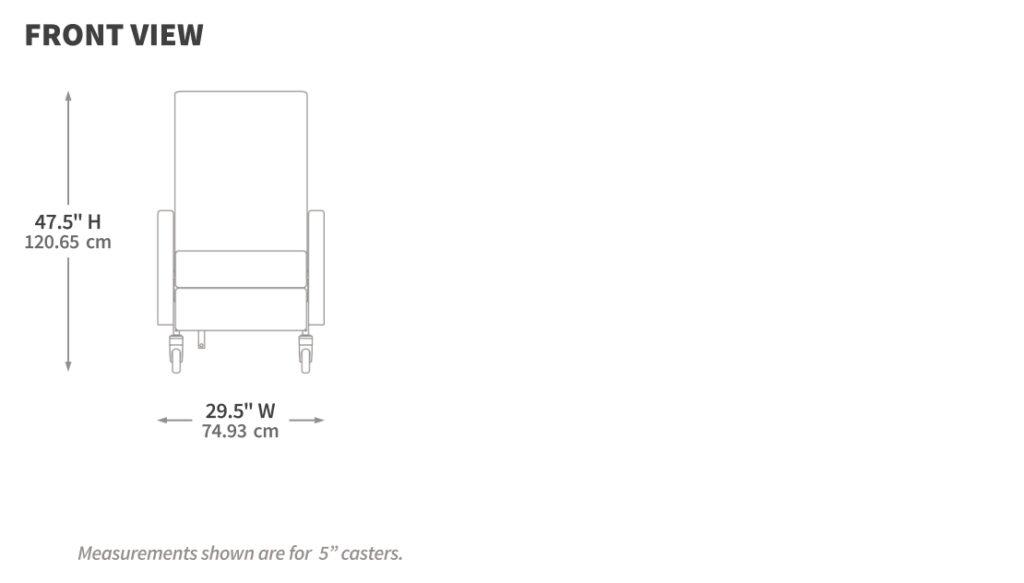 | Casters | 5″ (12.7 cm) 3″ (7.6 cm) | 3″ (12.8 cm) |