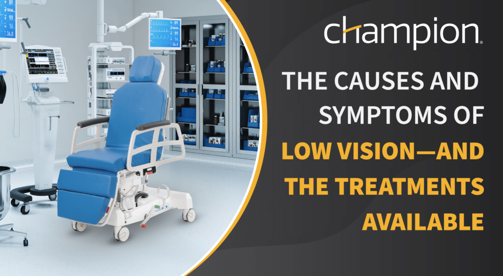 If the diagnosis is not low vision, but a disease that can be treated with surgery, Champion’s TMM5 PLUS is a must-have in ophthalmic settings. This innovative procedure chair enables facilities to streamline the treatment process and surgical flow by replacing multiple pieces of equipment with a single device.