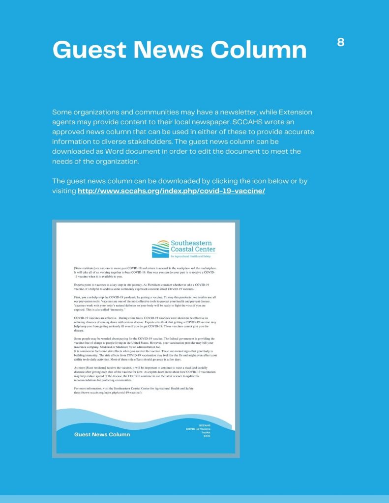 Turn the pages to explore the toolkit or download the toolkit. You may also watch the webinar recording that introduces the toolkit. Components of the Vaccine Communication Toolkit are also available in Spanish, Haitian Creole, and Vietnamese. Please scroll below the English components on this page to find materials in these three languages.