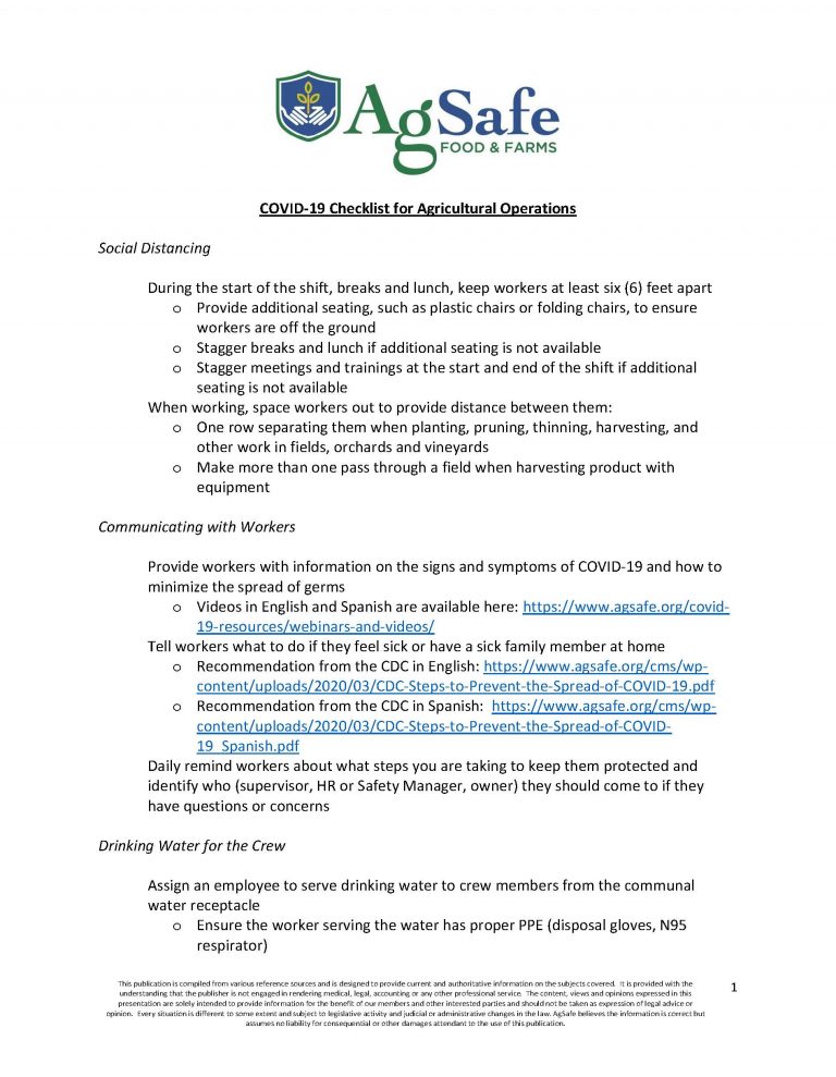 • Is there a COVID-19 checklist for agricultural operations? Factsheet