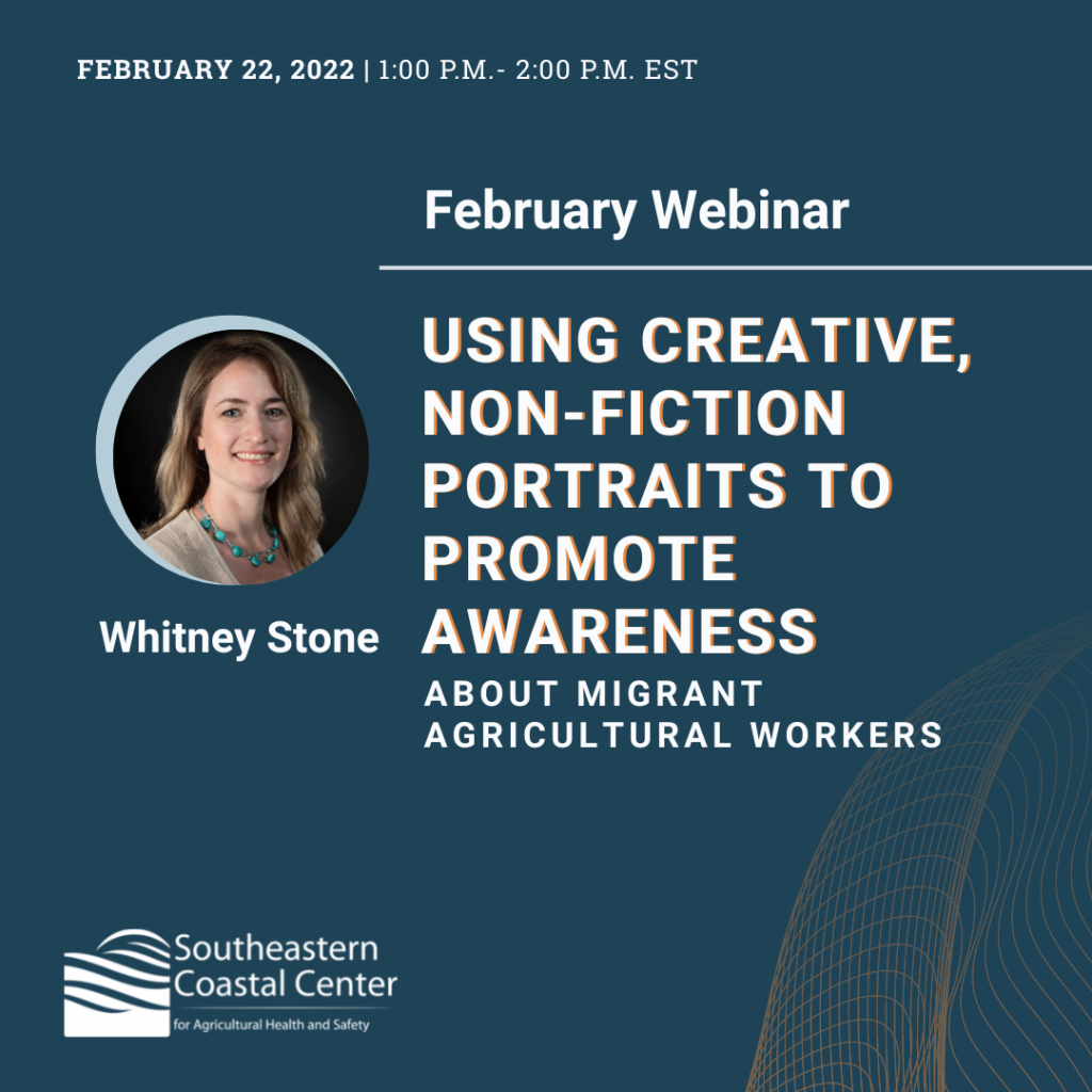 In our upcoming webinar, hear from Dr. Whitney Stone as she shares about a project that aimed to make visible the people of the agricultural workforce, through means of creative, non-fiction portraits. Within the portraits, migrant workers discuss the agricultural workforce they are a part of, their COVID-19 experiences, and their perceptions of climate change. Join the webinar to hear Dr. Stone discuss ways to make migrant workers’ stories accessible, where audiences can find this project’s portraits online, and recommendations to the university, extension, and community outreach networks on how to support migrant workers in Florida.